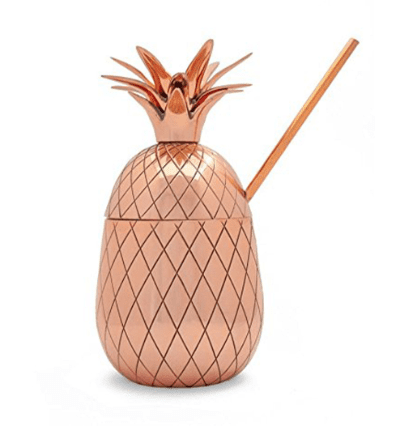 Copper Plated Pineapple Cocktail Jar with Straw 16 oz