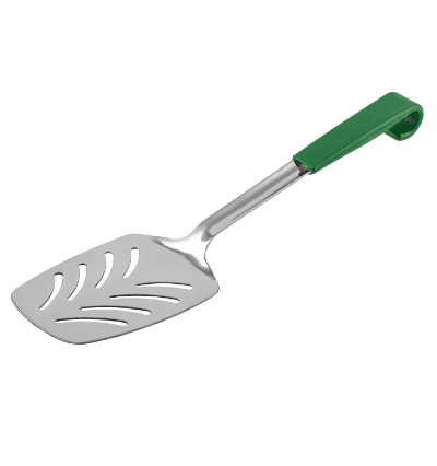 Buffet Slotted Turner Green Handle 14″ – 1.5 mm