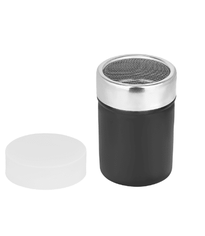 Color Coated Chocolate Shaker Mesh Top with Plastic Lid 7 x 9.5 cm – Black